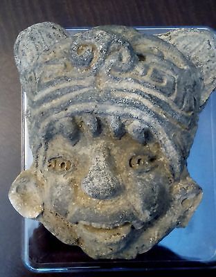Vintage Pre Columbian? Mexico Clay Stone Face Figure Statue Mayan Aztec Olmec