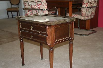 Title (ebay affiliate link): Vintage two draw marble top table with brass edging