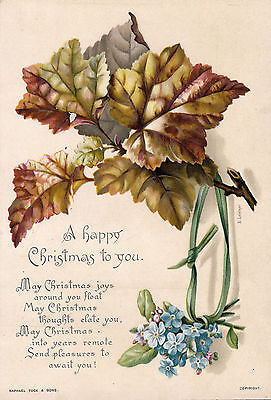 1889 Raphael Tuck & Sons Gorgeous Autumn Leaves Lithographed Christmas Card