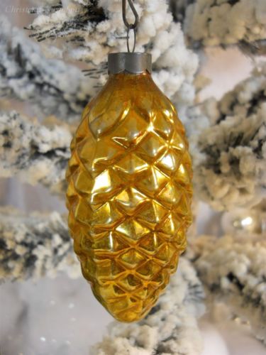 Title (ebay affiliate link): 1940s CORNING PRE-WW2 WAR ERA ~ *LARGE* Gold PINECONE Deco Xmas Ornament