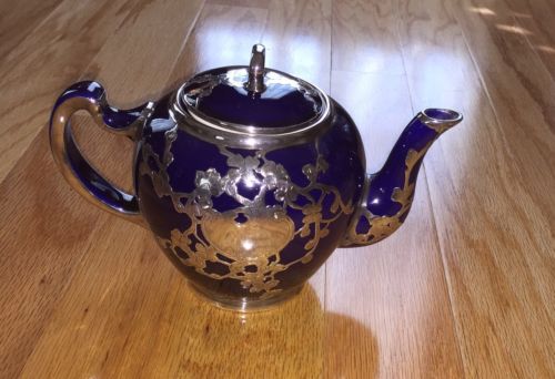 Title (ebay affiliate link): VINTAGE OR ANTIQUE COBALT PORCELAIN ORNATE SILVER OVERLAY 6" TEAPOT