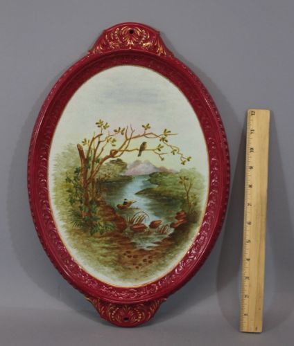 Antique Folk Art Painting, 1-Piece Porcelain Plaque & Frame, NR