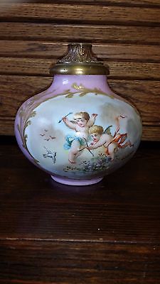 Small French Porcelain & Bronze Hand Painted Lamp Base (as is)