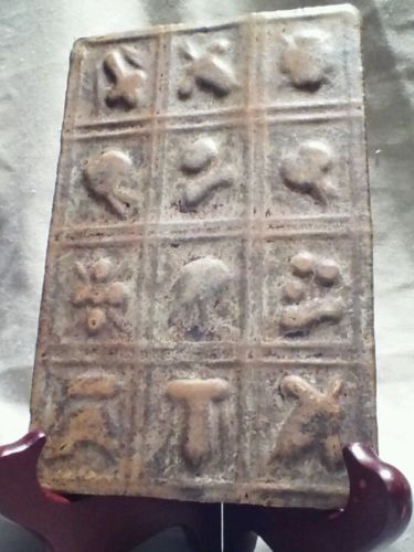 Antique redware tile with unknown symbols, 4 1/2" x 7"