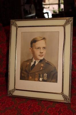 Vintage 1940s Art Deco Ornate Metal Picture Frame Colorized Picture Soldier