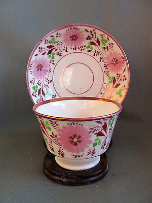 Antique PINK LUSTER STAFFORDSHIRE Cup and Saucer Handleless 19th c.