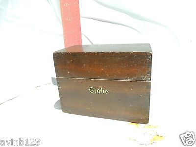GLOBE DOVETAILED WOODEN FILE BOX - RECIPES OR INDEX CARDS - NO DAMAGE!