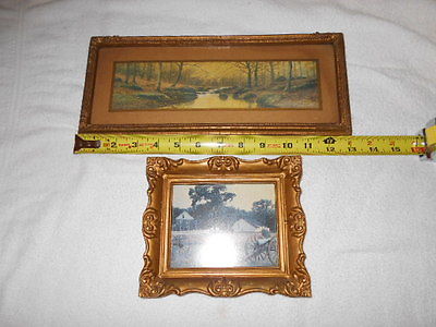 LOT OF 2 VINTAGE OLD GETTYSBURG CANNON WALL FRAME PICTURE & CREEK IN THE WOODS
