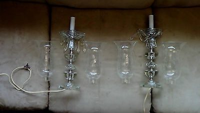 VINTAGE PAIR CLEAR GLASS CRYSTAL HURRICANE LAMPS ****** Nor Reserve ******