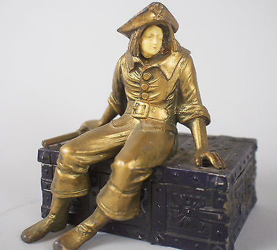 Vtg Art Deco 1930s JB Hirsch Pirate Lady on Treasure Chest Jewelry Trinket Box