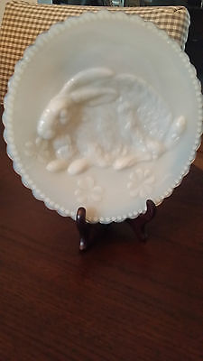 Early Milk Glass Rabbit in Relief Plate Nice Easter Gift