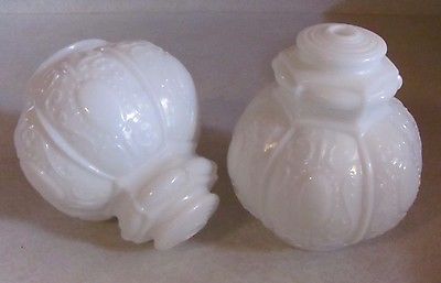 Title (ebay affiliate link): Two Vintage White Milk Glass Light Globes Ornate Heavy Shades Crafts Lamp
