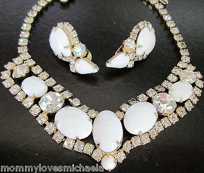 Title (ebay affiliate link): Beautiful White Milk Glass Sparkling Ice Rhinestone Necklace Earring Set