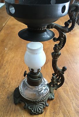 Antique Vint Cast Iron Tin Vapo Cresolene Vaporizer Medical Milk Glass Oil Lamp