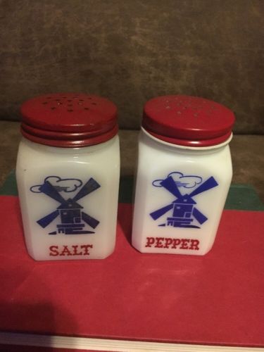 Vintage Milk Glass Windmill Salt And Pepper Shakers