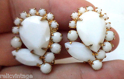 STUNNING VINTAGE ESTATE JULIANA D&E MILK GLASS RHINESTONE CLIP EARRINGS!!! G8905