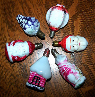 6 NICE OLD VINTAGE FIGURAL XMAS MILK GLASS LIGHT BULBS