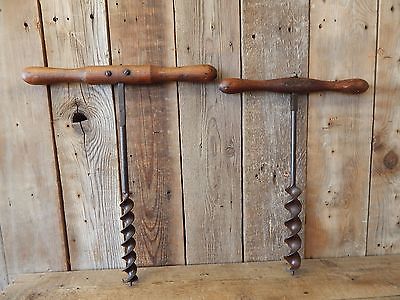2 Antique Carpenters Wood Auger Drills ~ Vintage Barn Beam Ship Tools Decor 0555
