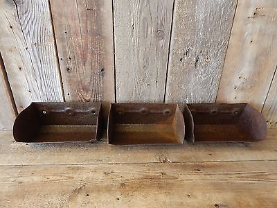 3 Vintage Industrial Grain Feed Scoops Buckets Wall Pockets Rustic Decor 0563