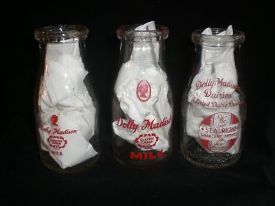 DOLLY MADISON MILK & ICE CREAM GLASS BOTTLES LOT 3 NICE