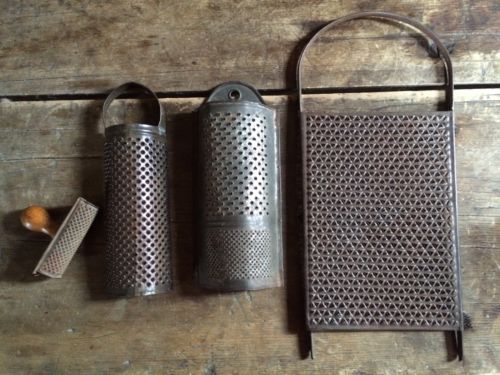 Title (ebay affiliate link): Antique Collection Hand Punched Tin Graters Nutmeg AAFA Patina