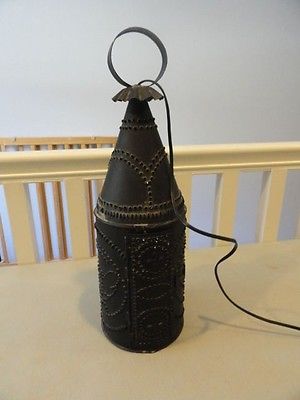 Title (ebay affiliate link): Antique Primitive Punched Tin Revere-Style Hanging Electric Lantern Lamp