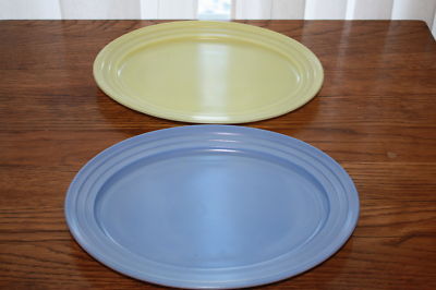 Two Moderntone Platters Hazel Atlas Blue and Yellow