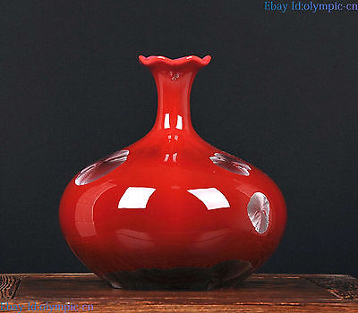 7" Chinese red porcelain Jingdezhen Water glaze ginkgo leaf Flower basket vase
