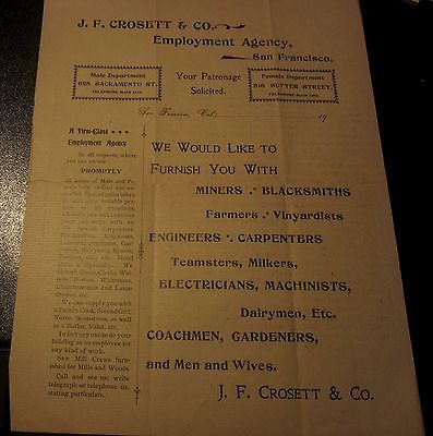 Title (ebay affiliate link): 1905 Broadside San Francisco Employment Agency Mining Miners California
