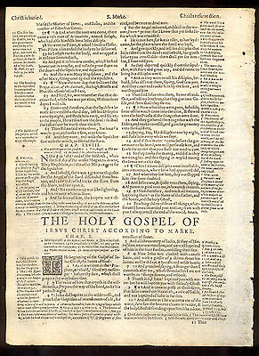 1609 Geneva Quarto Roman Letter Bible Leaf/GREAT COMMISSION/TITLE MARK!