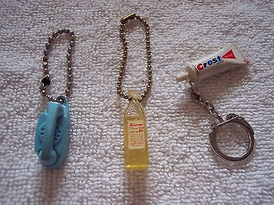 3 Vintage Key Chain lot, 1 Seagrams Gin 1 Crest Toothpaste 1 The Princess Phone