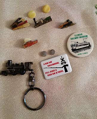 Vintage Train Enamel Lapel Pins, and 1 Train Keychain