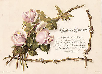 1880s Beautiful Pink Rosebuds, Raphael Tuck & Sons Victorian Christmas Card