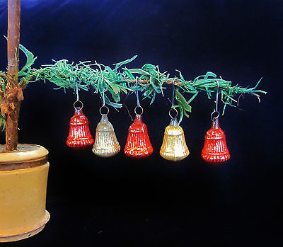 5 Antique Christmas Ribbed Glass Bell Feather Tree Ornaments