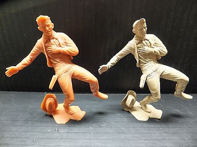2 Vintage 1964 MARX TOY PLASTIC COWBOYS 6" Western Figure Action Tan Brown Color