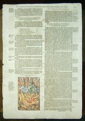 1597 Foxe Acts & Monuments Martyrs Leaf/Rare/Bible/HAND COLORED WOODCUT!