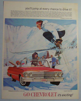 Title (ebay affiliate link): STUNNING 1963 CANADIAN CHEVROLET IMPALA CONVERTIBLE SKIING CAR AD CANADA