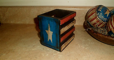PRIMITIVE WOOD CRATE CRACKLE STAR AMERICAN FLAG AMERICANA COUNTRY DECOR