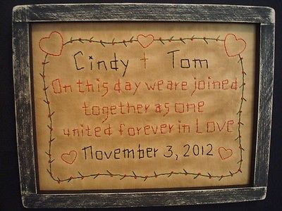 Title (ebay affiliate link): Primitive Country Personalized ~WEDDING SAMPLER~ Stitchery 12" x 9 1/2"