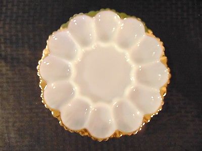 Title (ebay affiliate link): Vintage Anchor Hocking White Milk Glass Deviled Egg Plate With Gold Trim