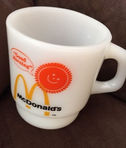 MCDONALD's GOOD MORNING CUP FIRE KING Coffee Cup Mug Milk Glass ANCHOR HOCKING