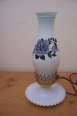 (AD 37) VINTAGE MILKGLASS HOBNAIL HURRICANE ELECTRIC LAMP AIR BRUSH BLUE ROSE