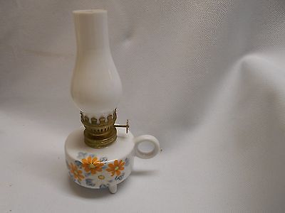 vtg white milk glass orange flower miniature oil / kerosene finger lamp lantern