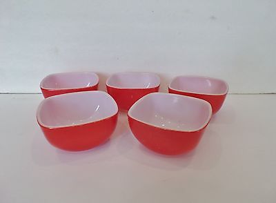 Vintage 1950's Red Pyrex #407 Ramekins/Hostess Bowls 7oz Set of 5 - Milk Glass