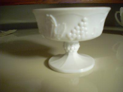 Title (ebay affiliate link): Antique Milk Glass Small Pedestal Candy Dish Ring Jewelry Trinket Grape Pattern