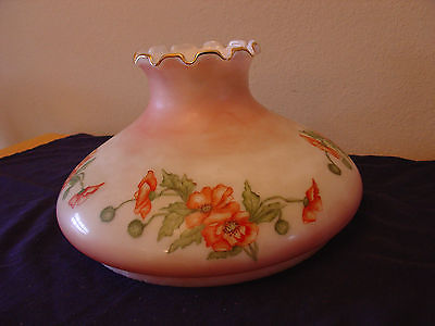 WHITE MILK GLASS & PINK WITH PAINTED FLOWERS GWTW LAMP SHADE