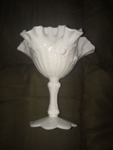 Title (ebay affiliate link): Fenton Glass Compote Pedestal - White Milk Glass- Cabbage Rose ?Open Candy Dish
