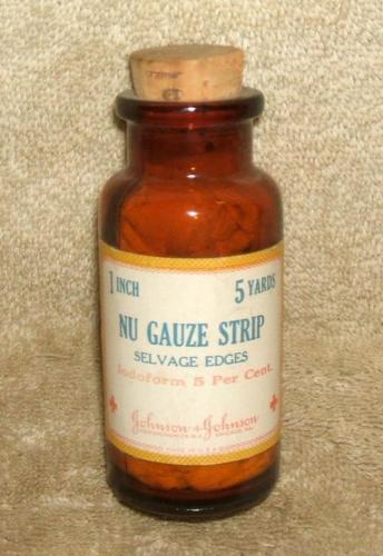 Title (ebay affiliate link): Early 1900's Johnson & Johnson Nu Gauze Strip Bottle