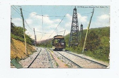 Title (ebay affiliate link): BUTLER PA POSTCARD 1910 OIL WELL INTERURBAN TROLLEY ALAMEDA PARK