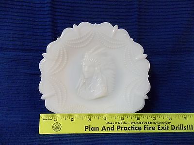 VINTAGE WESTMORELAND INDIAN CHIEF MILK GLASS WALL PLATE DISH 7 " OPAQUE WHITE